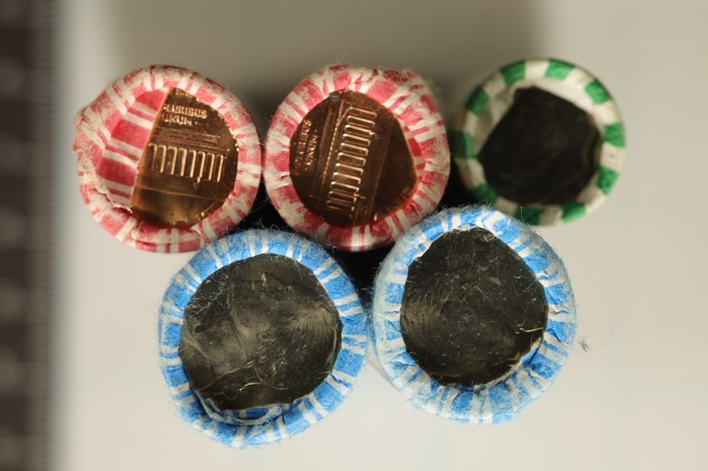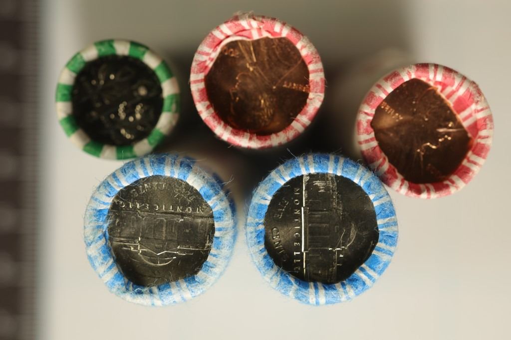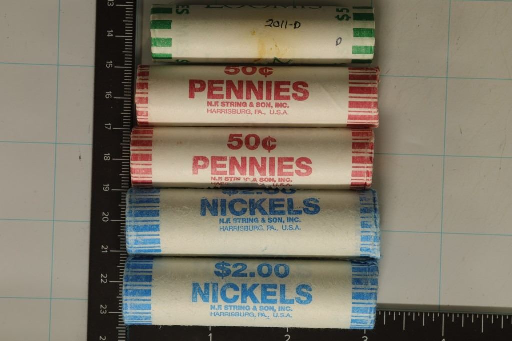 DIMES, 2-ROLLS OF $2 JEFFERSON NICKELS-2003-P & D AND 2-2004 LINCOLN CENTS. IN VARIOUS WRAPS