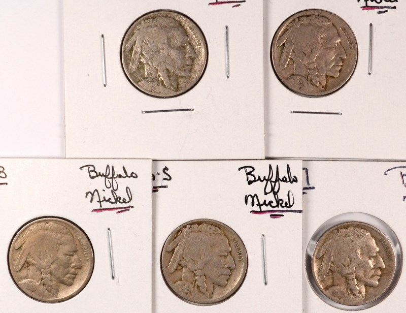 (5) BUFFALO NICKELS (16-S, 17, 18, 18-D, 23-S)