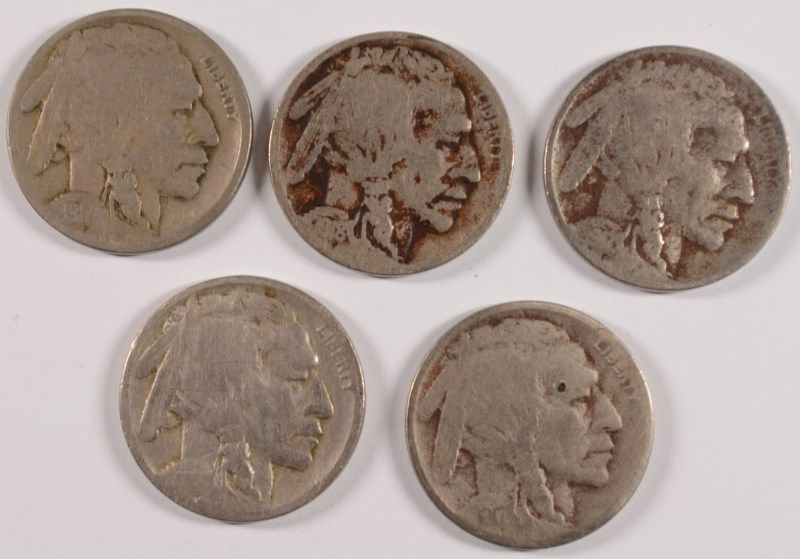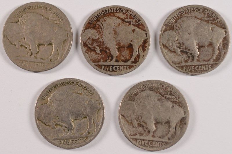 (5) BUFFALO NICKELS (17, 17-D, 17-S, 18, 18-D)