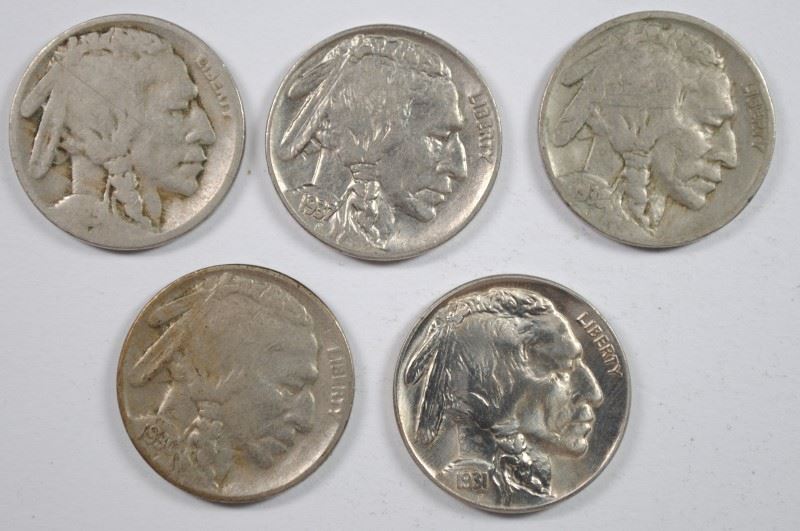 (5) BUFFALO NICKELS (1925-S, 1930-S, 1931-S, 1937, 1938-D)