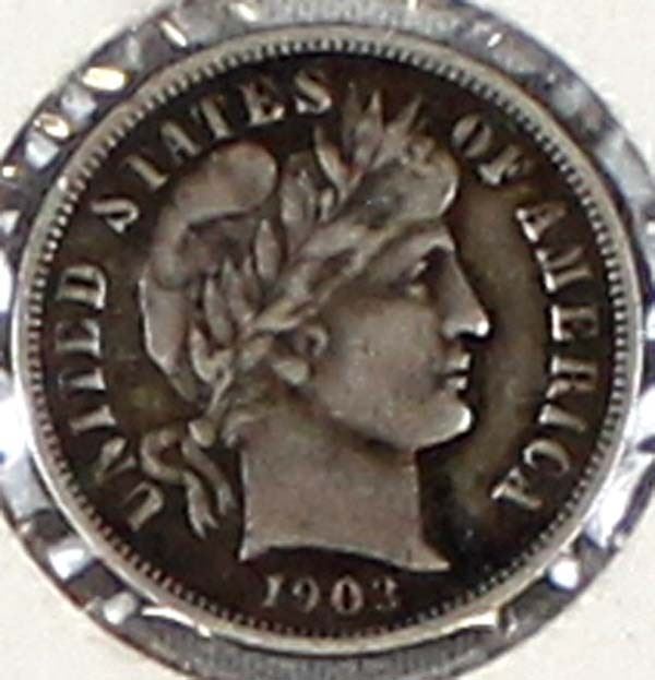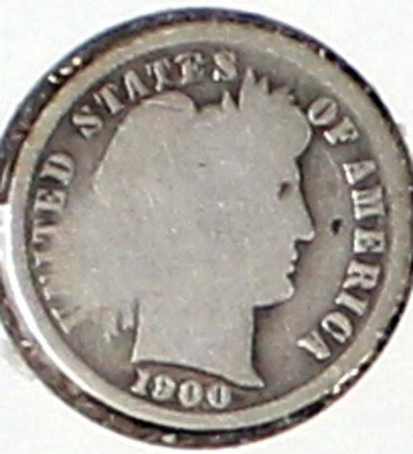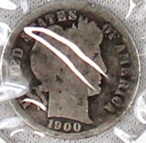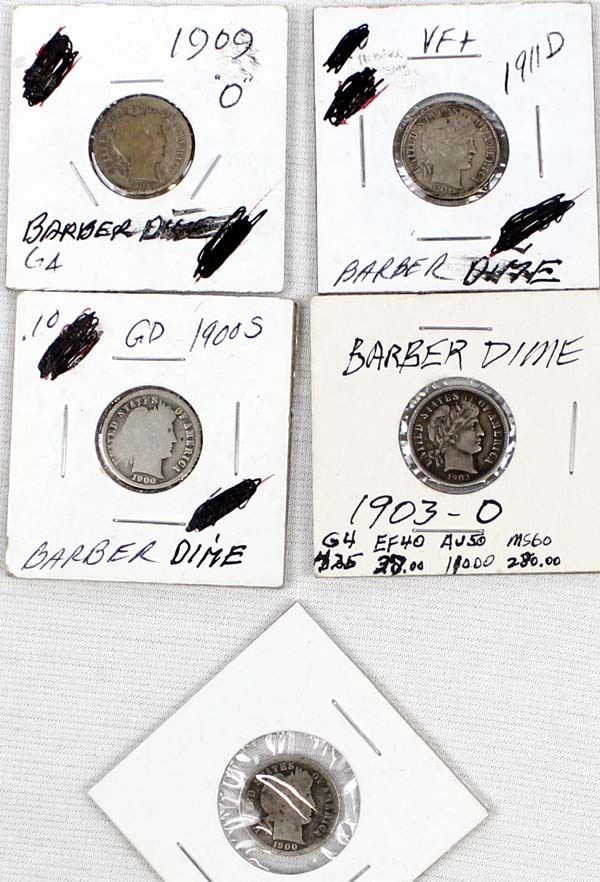 5 Barber Dimes, includes 1900, 1900-S, 1903-O, 1909-O, 1911-D