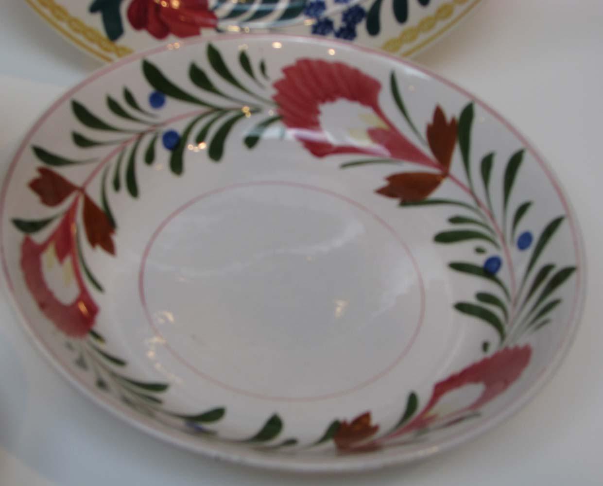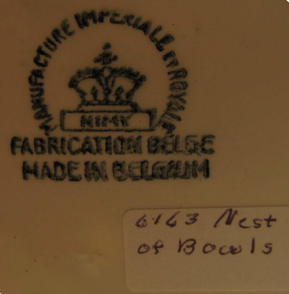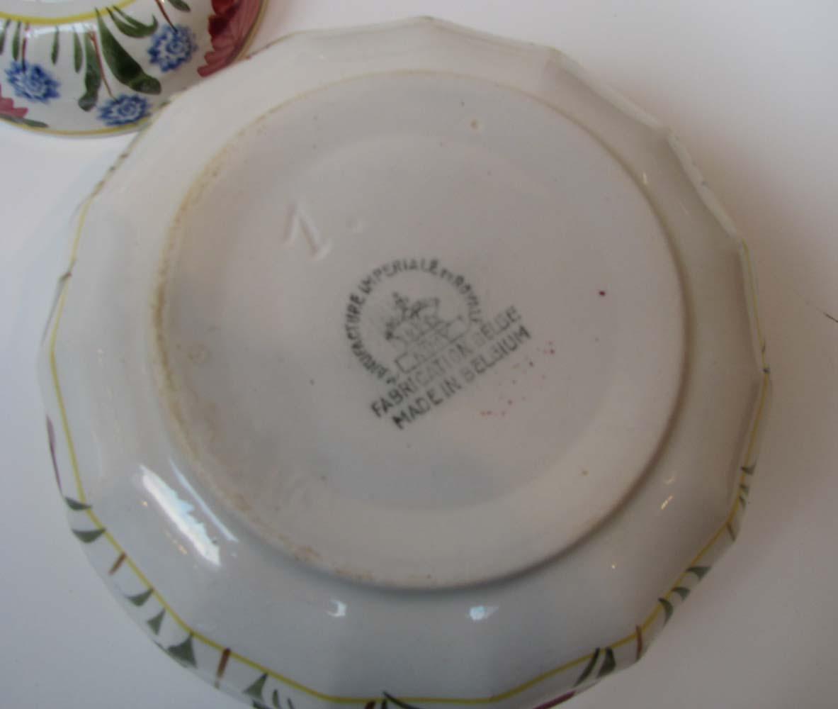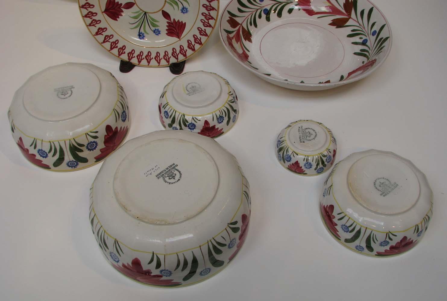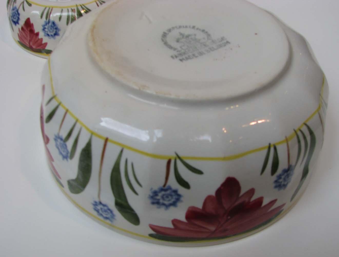 5 Belgian Spongeware Nesting Bowls with matching bread plate, trivet, bowl and serving dish