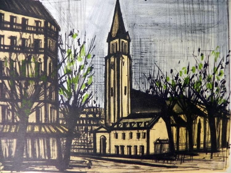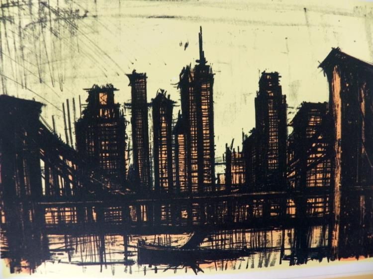 Artist: Bernard BuffetMedium: Colored lithographsMatte: Double mattedImage size: 6" x 8" to 6 1/2" x 8 1/2"Matte size: (2) 15" x 12" and (3) 15" x 15"Condition: Very good; some smudge marks on the outside mattingBiographyFor his admirers, Bernard Buffet is the "pure genius". He was admitted in "Ecole Nationale des Beaux-Arts" at the age of 15, then introduced among collectors by the painter "Aujame" and rewarded "Prix de la critique" (Critics Award) at 20 years old. Bernard Buffet is recognised as a master in his art, and his paintings are collected in the most famous museums around the world. Bernard Buffet represents a typical demonstration of the divorce between the French and Contemporary Art. Popular artist by excellence, Bernard Buffet loved by the public is however detested by elitists whom hold against him his prolixity : 8,000 paintings, water colors,drawings, lithographs and engravings.So few material and very little colour, only greys, black, "bistres", and greens. <a href="http://museebernardbuffet.com/4550/buffet455017g.jpg"></a>His paintings are strong and breathtakingly unforgettable<a href="http://museebernardbuffet.com/4550/buffet455022g.jpg"></a>. Bernard Buffet's style can be recognised among others by a network of "dry" straight lines grey gaces, wrinkled foreheads, scarce straight hair, tensed hands. His characters seemed crucified. This new artistic personality is recognised : Bernard Buffet's style is born.Bernard BUFFET has also been classed as a figurative painter, opposed to abstracts, but also and certainly to painters which practised "Social Realism".*Retrieved from: http://museebernardbuffet.com/enminibio.html