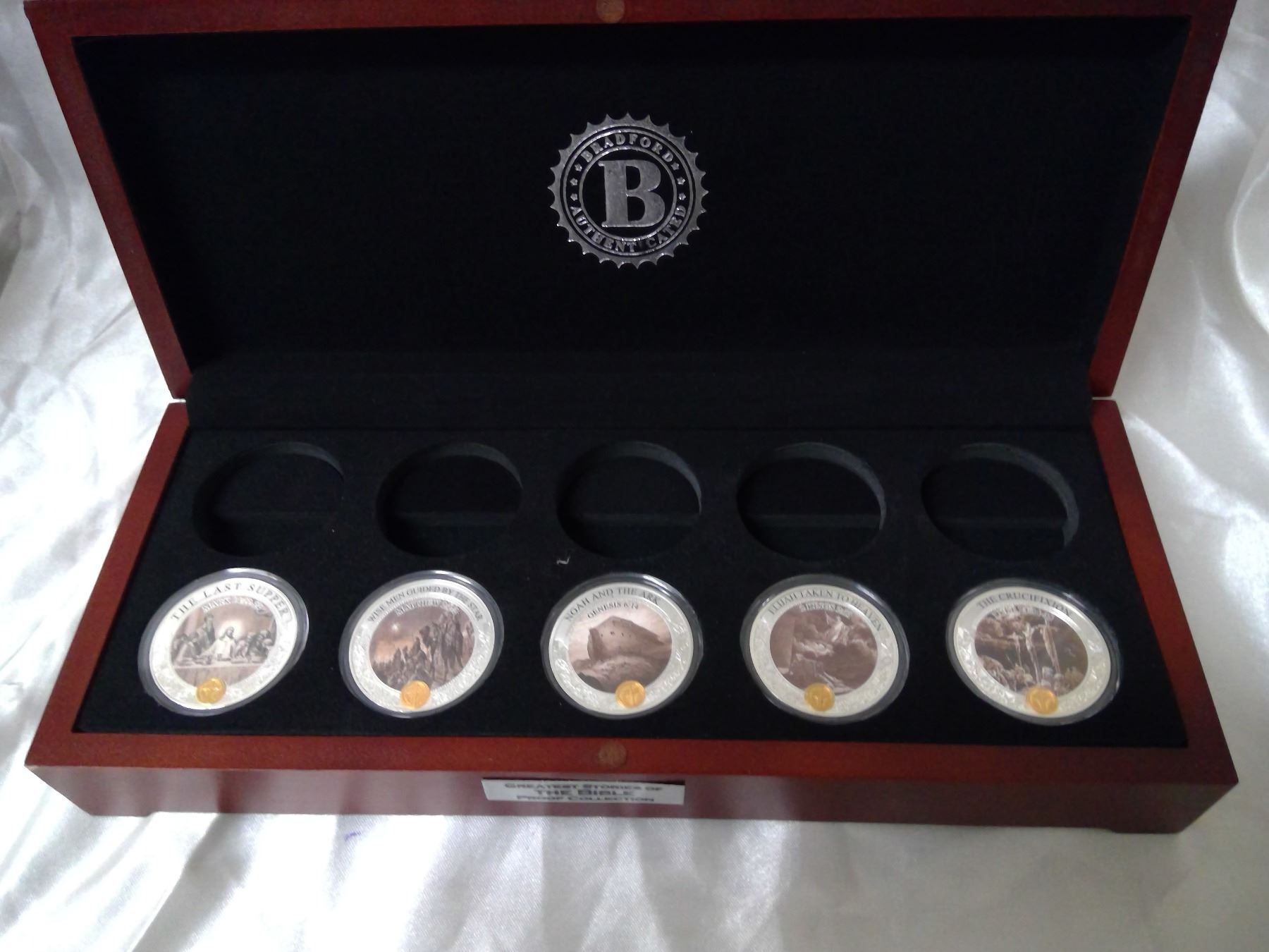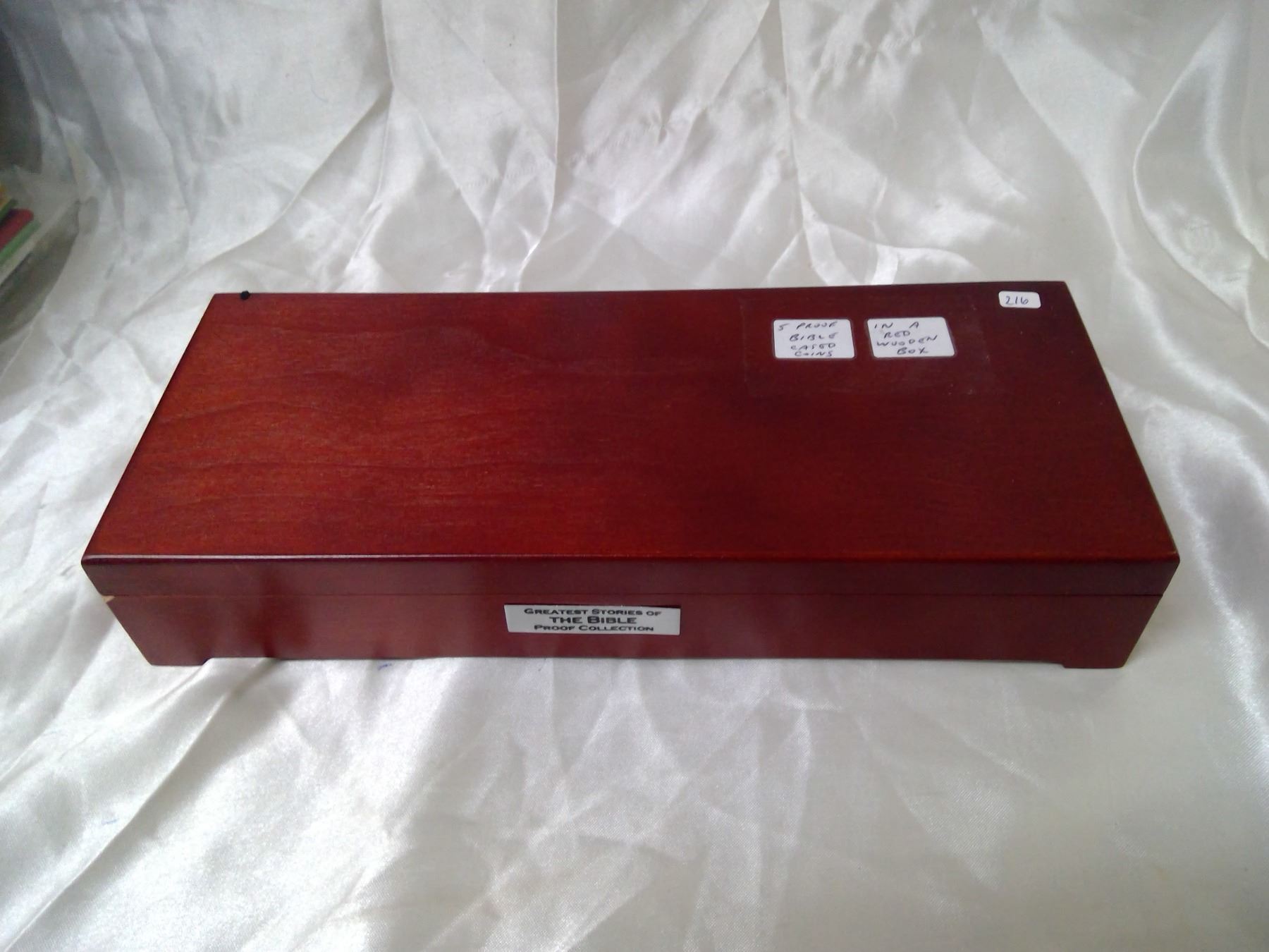 5 Bible Coins in Red Wooden Box- Made by Bradford Exchange