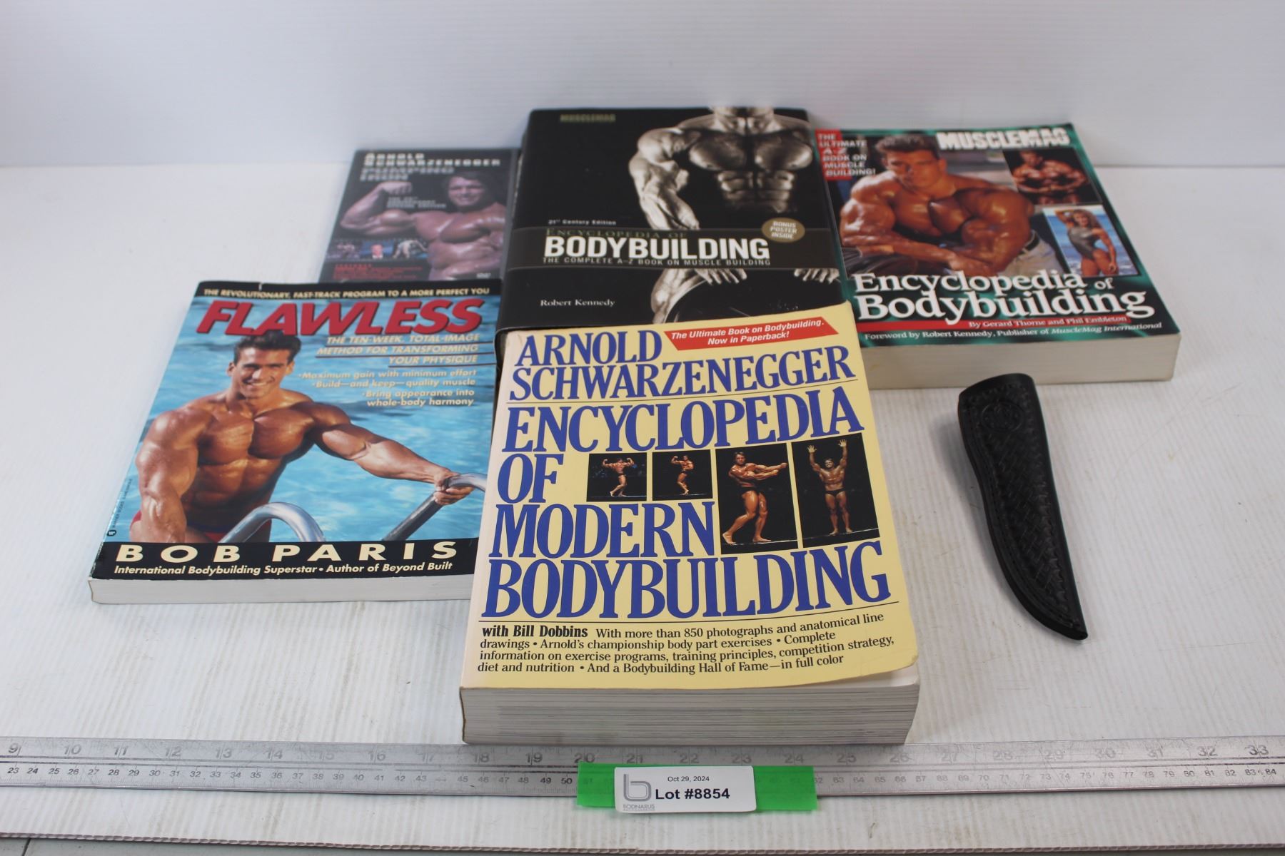 (5) Bodybuilding Books/ DVDs, Leather Knife Sleave