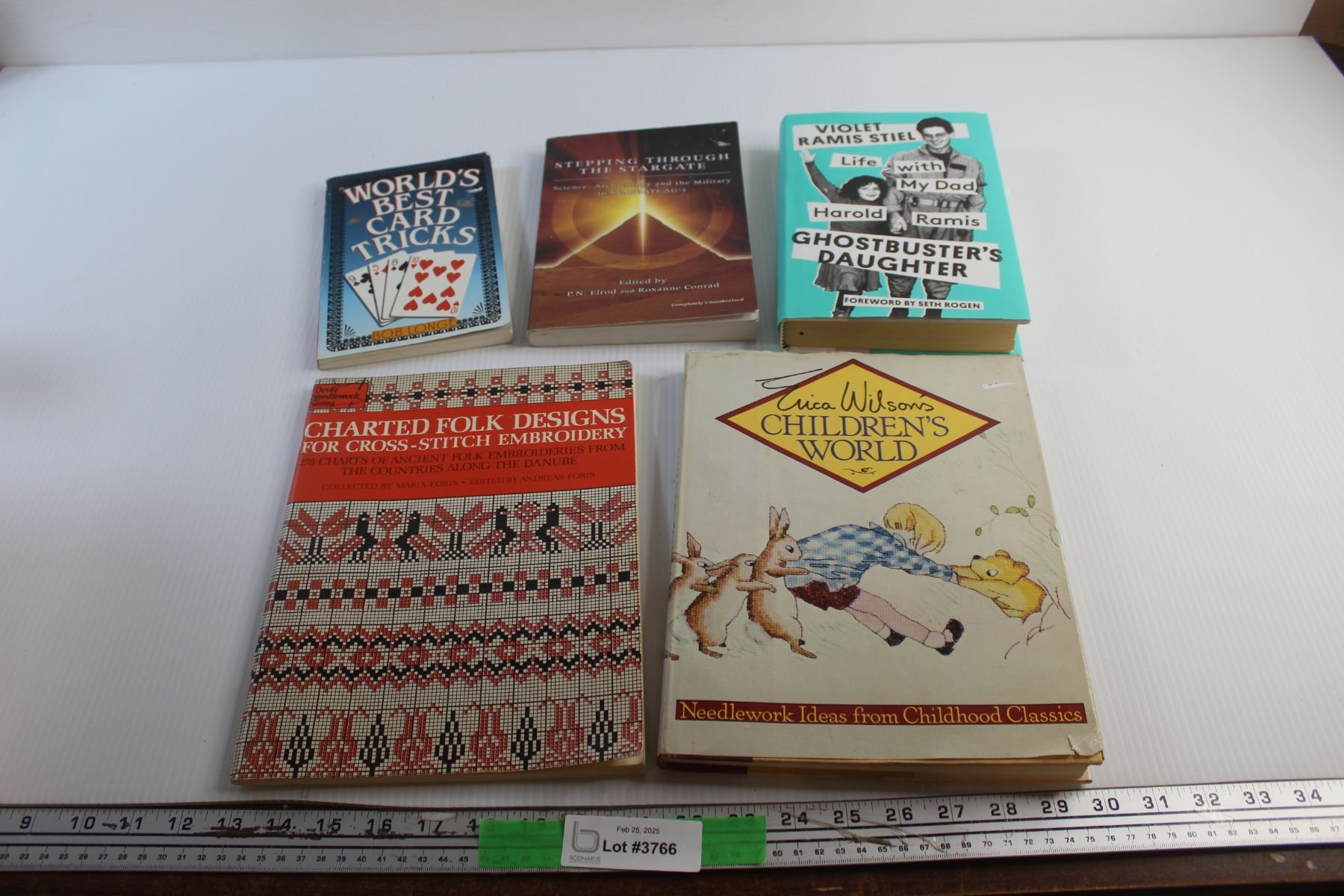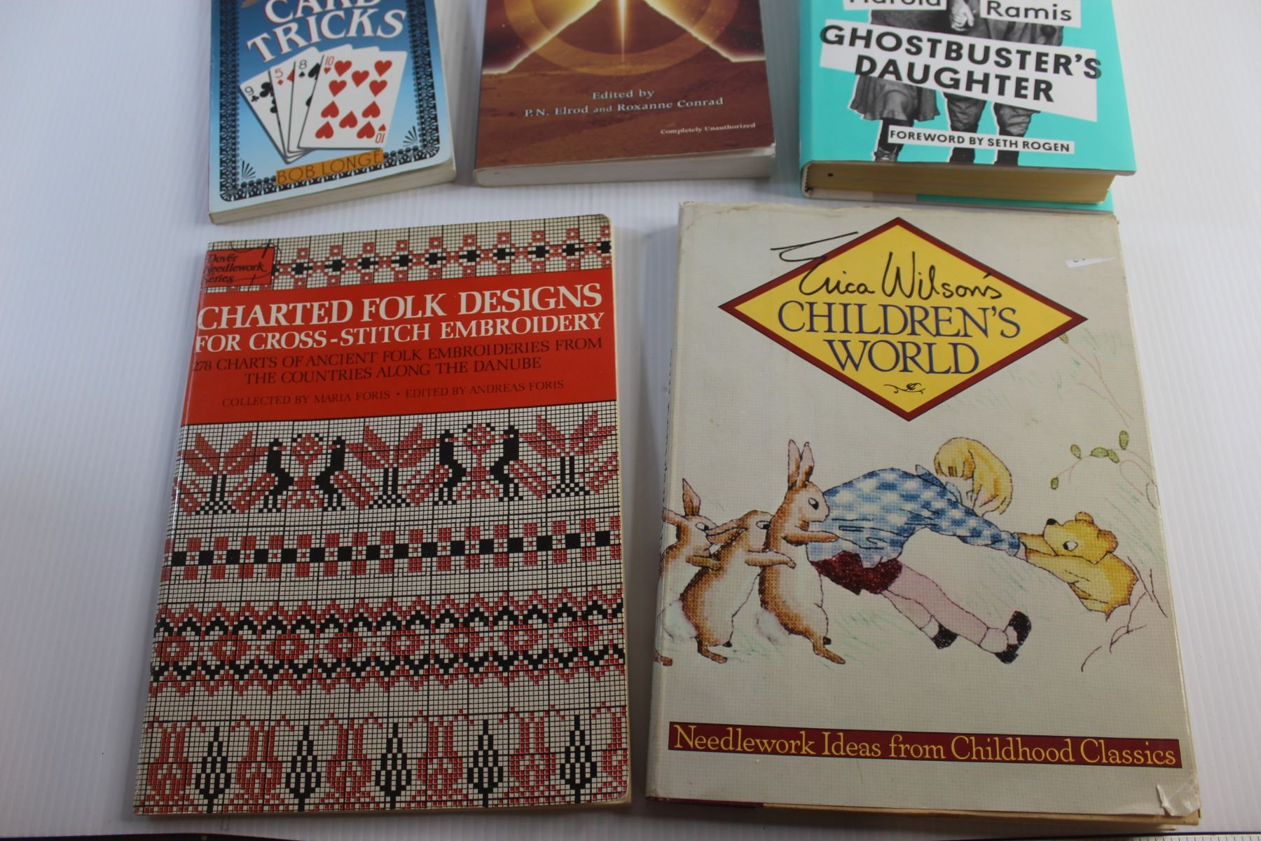 (5) Books - Children's World, Cross Stich Embroidery Designs and World's Best Card Tricks