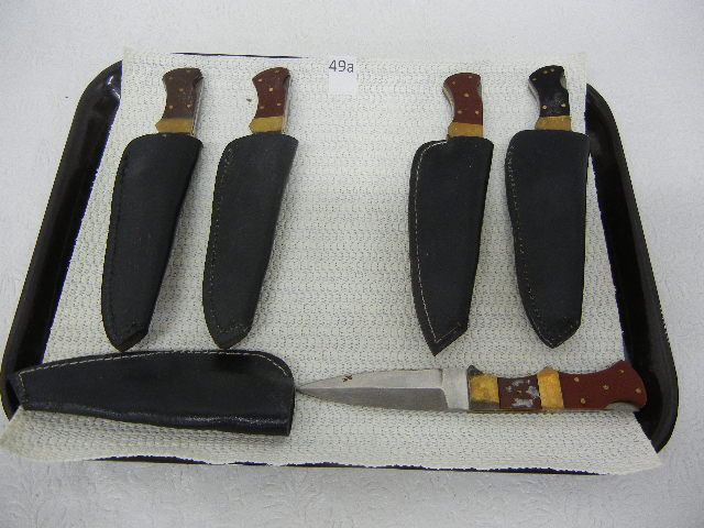 5 Boot Knives w/ Sheaths, 1 Black Handle and 4 Brown Handles