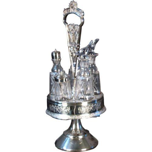 5 Bottle Cruet set with all matching bottles that have purpled