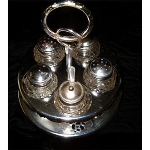 <tr><td>Title:5 Bottle castor set in chromed stand</td></tr>