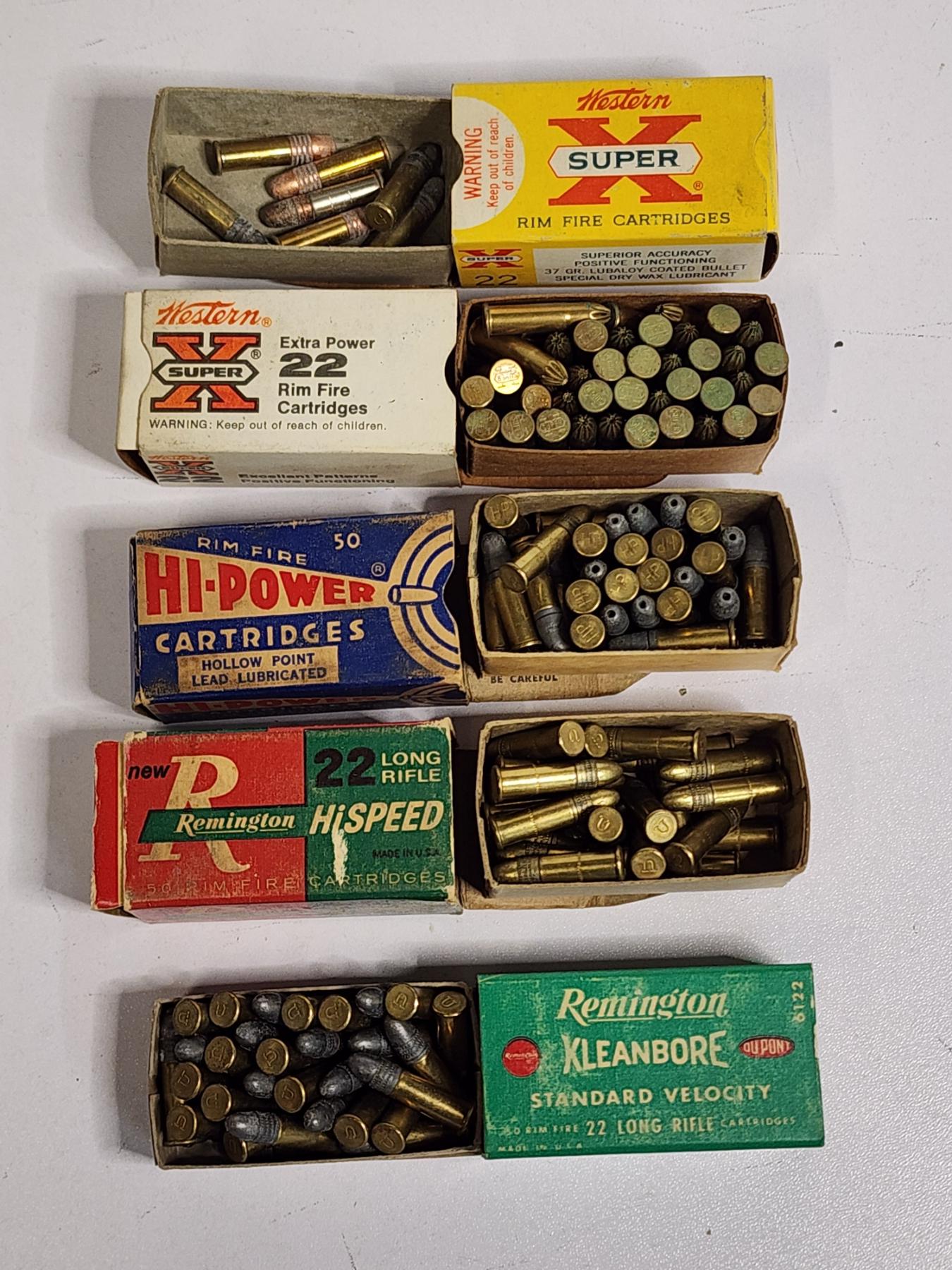 5 Boxes of 22 Rim Fire Cartridges Ammo - Mostly Full
