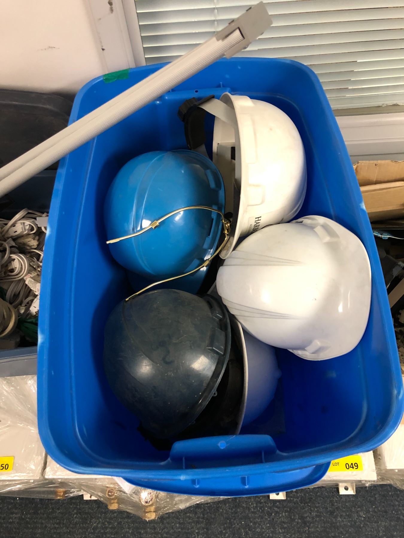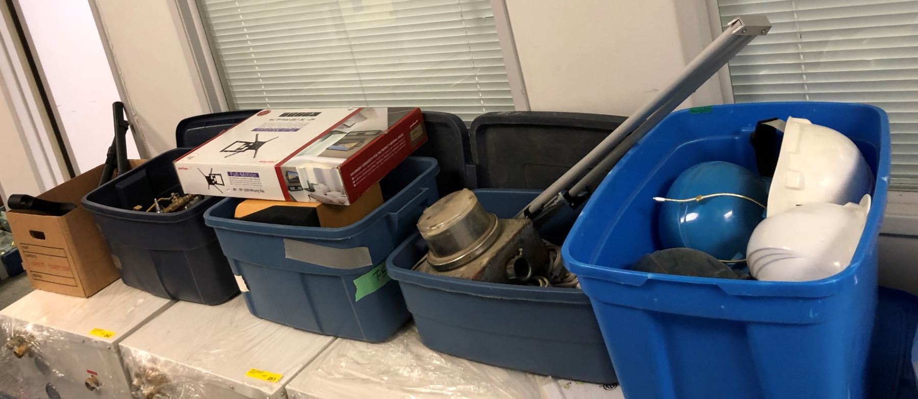 5 Boxes of Misc. Items - Construction Helmets/Extension Cords/Wall-mount/ Plumbing/Etc..