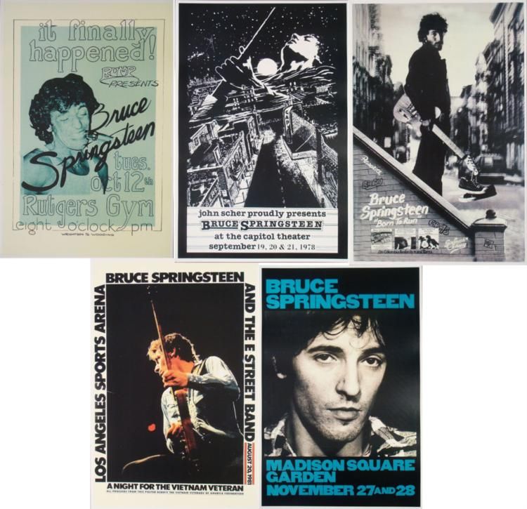 These are 5 reproductions of original posters from The Boss, including four from concerts, and one from the release of a classic album. * Condition: Excellent Size: 12" x 18" Posters: It Finally Happened (Oct 12th, Rutgers Gym) Bruce Springsteen (Madison Square Garden, Nov 27th and 28th) John Scher presents Bruce Springsteen (Capitol Theater, Sept 19, 20 & 21, 1978)Bruce Springsteen and the E Street Band- A Night for the Vietnam Veteran (Los Angeles Sports Arena, August 20, 1981)