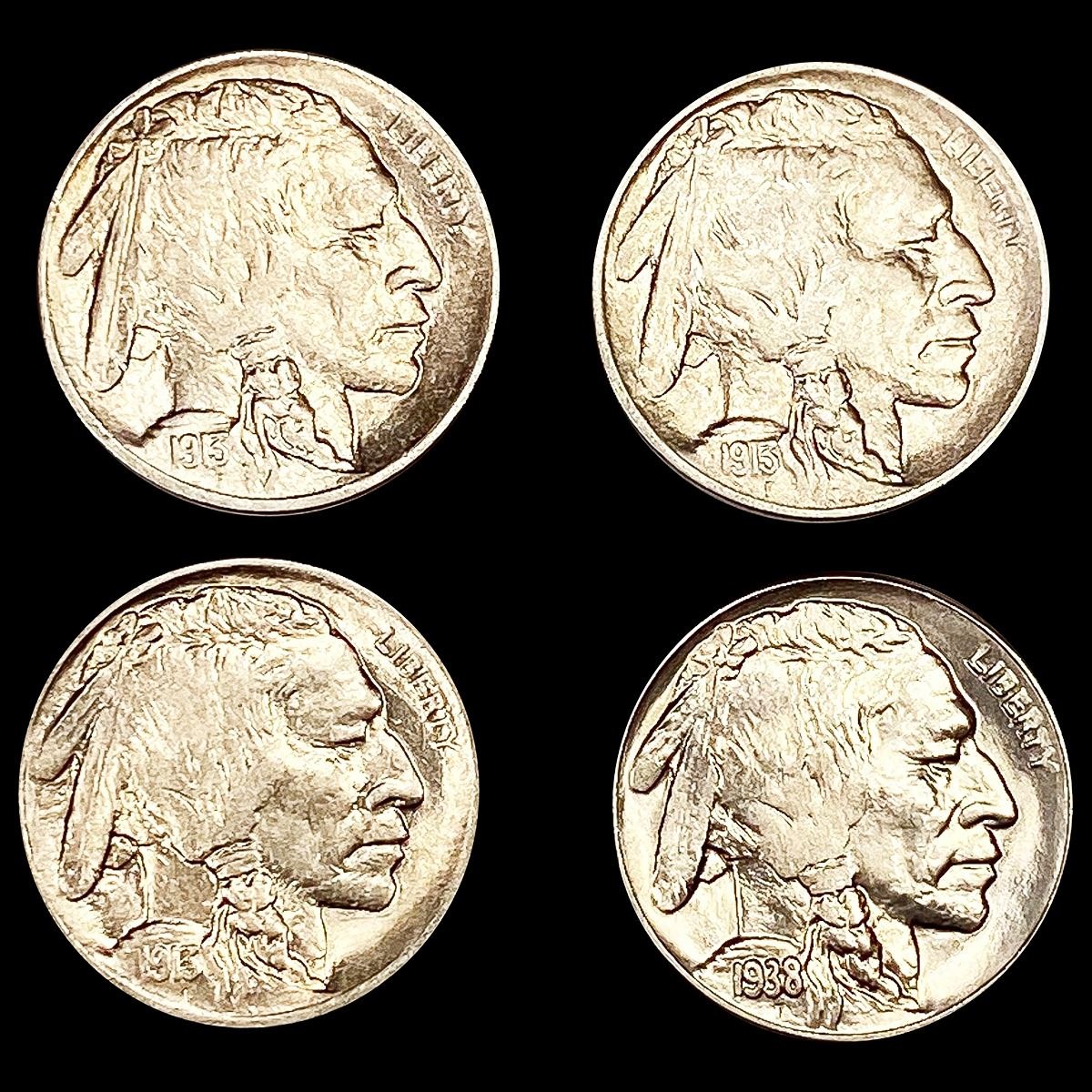 (5) Buffalo Nickels ((3) 1913, 1938-D) UNCIRCULAT