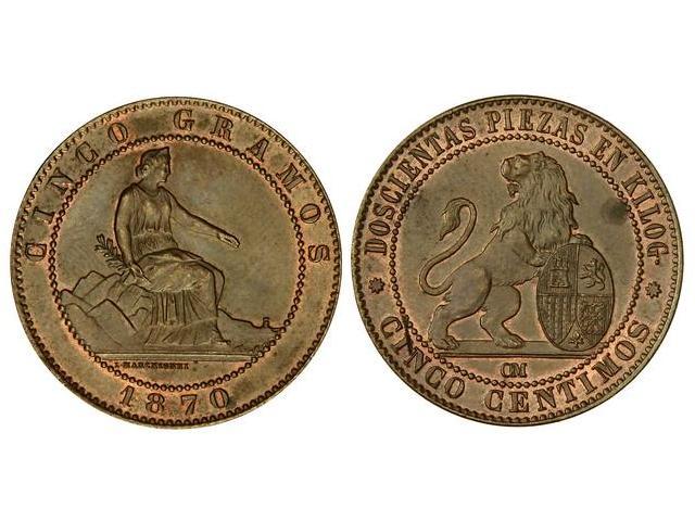 5 Céntimos. 1870. BARCELONA. O.M. MAGNÍFICO EJEMPLAR. SC-.
