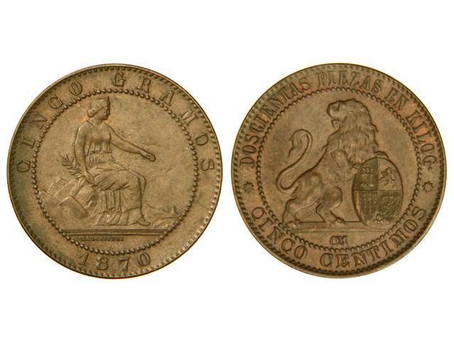 5 Céntimos. 1870. BARCELONA. OM. EBC-.