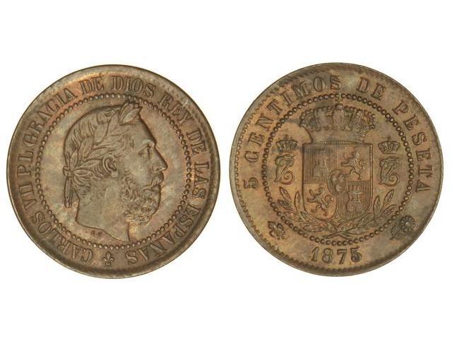 5 Céntimos. 1875. BRUSELAS. AE. Canto liso. Coincidente. Tipo medalla. Cal-10. EBC.