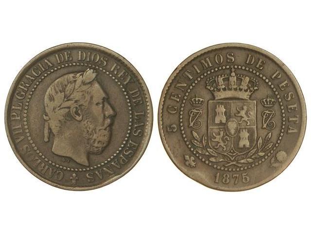 5 Céntimos. 1875. BRUSELAS. Anverso y Reverso coincidentes. Tipo medalla. MBC-.