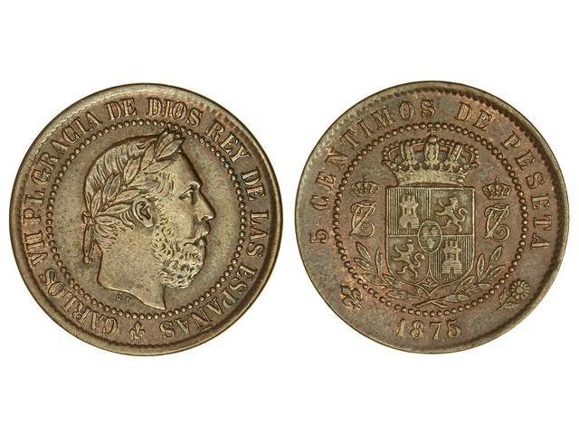 5 Céntimos. 1875. BRUSELAS. Anverso y reverso coincidentes. Tipo medalla. MBC+.