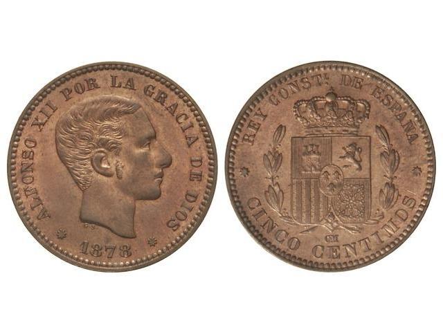 5 Céntimos. 1878. BARCELONA. O.M. Color y brillo originales. BONITA PIEZA. SC.