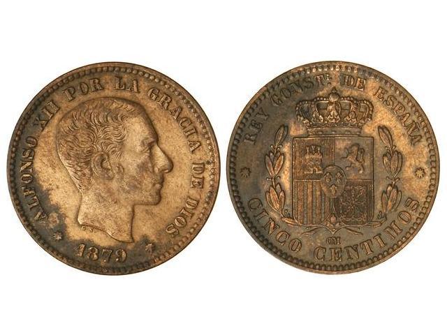 5 Céntimos. 1879. BARCELONA. OM. Pátina irregular. (EBC-).