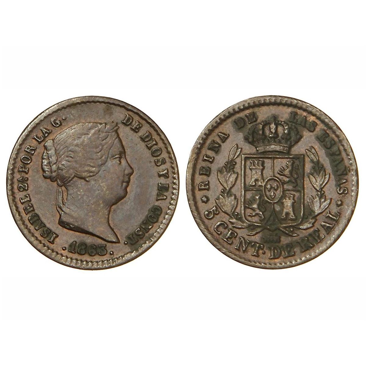5 Céntimos de Real. - 1863. - SEGOVIA. - (Acuñación descuidada en reverso). Cal-620. EBC-. - -
