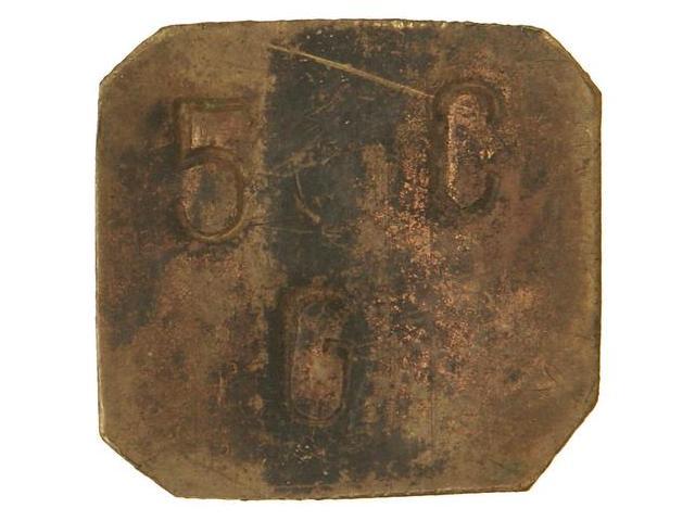 5 Cèntims. Aj. de GRATALLOPS. Variante de letras, con C y G rectas. Podría tratarse de una prueba. Acuñada a cospel de latón. (Oxidaciones). MUY RARA. AT-No cita. MBC+.