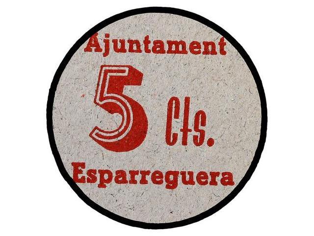 5 Cèntims. S/F. Aj. ESPARREGUERA. Cartón. MUY RARO. AT-944. S/C.