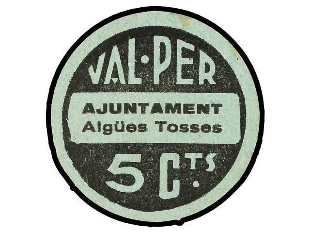 5 Cèntims. S/F. Aj. d´AIGÜES TOSSES. Cartón redondo. ESCASO. AT-36; T-51. EBC+.