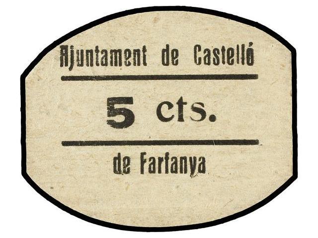 5 Cèntims. S/F. Aj. de CASTELLÓ DE FARFANYA. Cartón. MUY RARO. AT-752. EBC-.