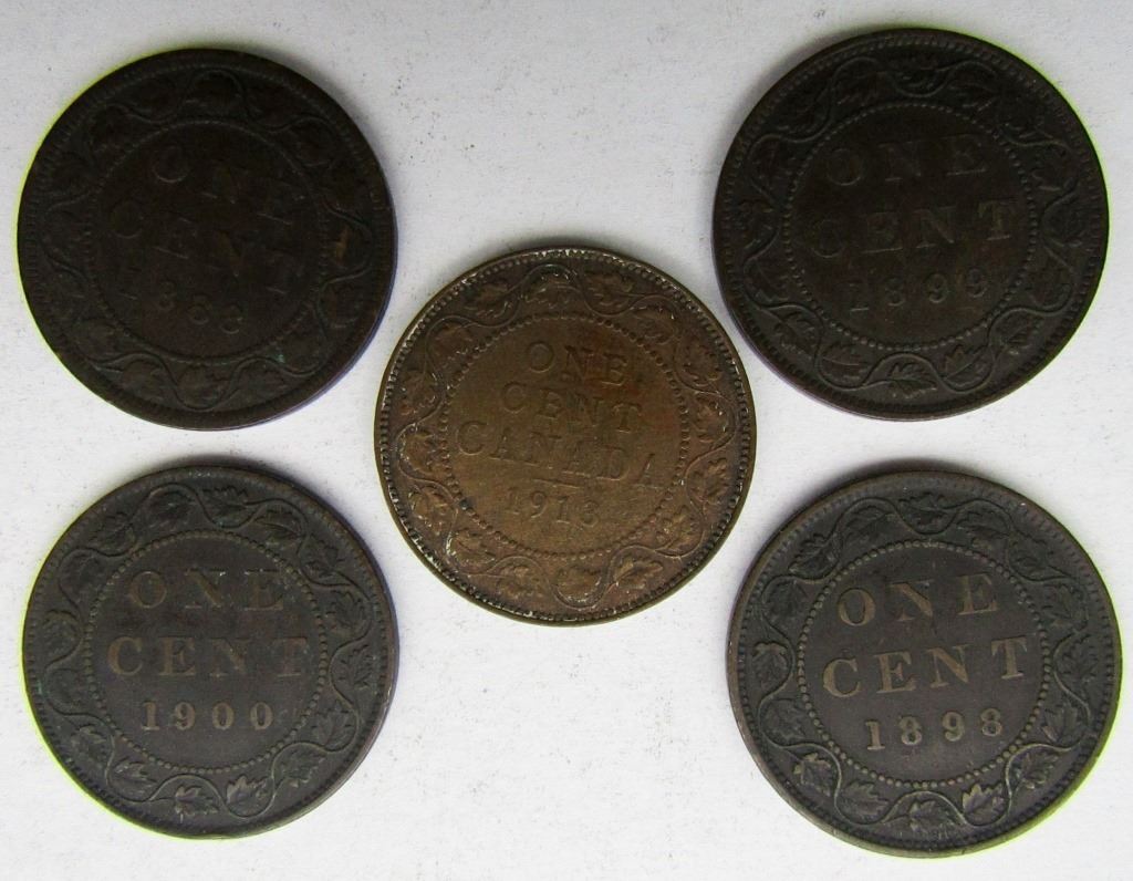 5-CANADA LARGE CENTS: 1888, 1898, 1899,