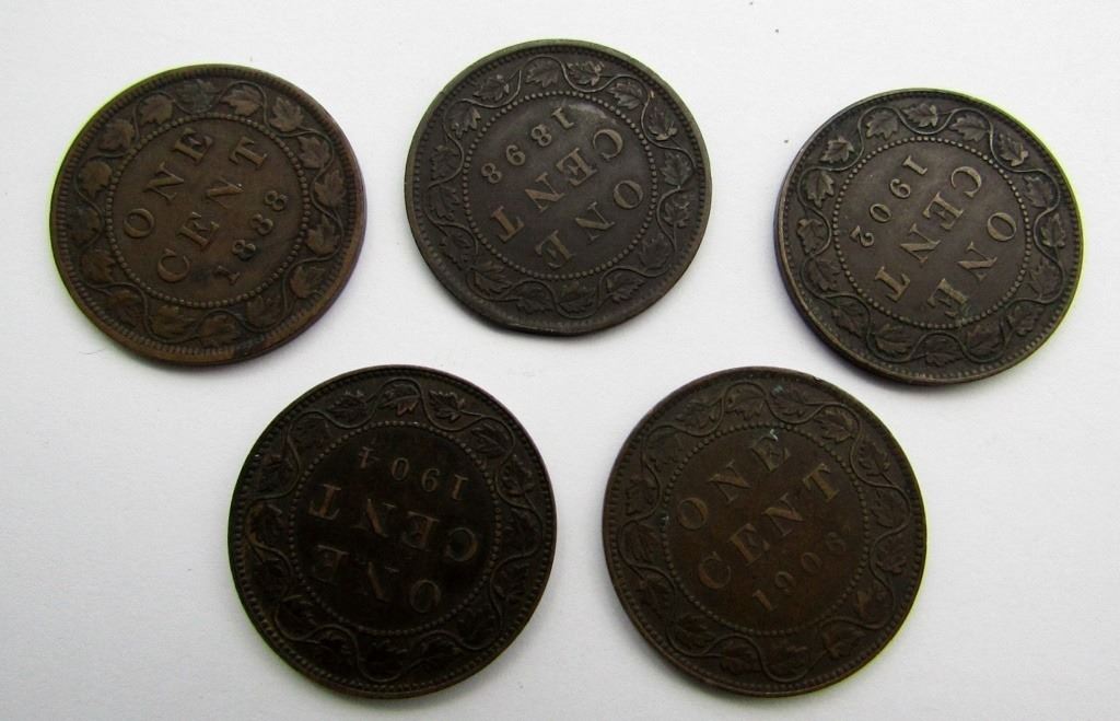 5-CANADA LARGE CENTS: 1888, 1898, 1902,