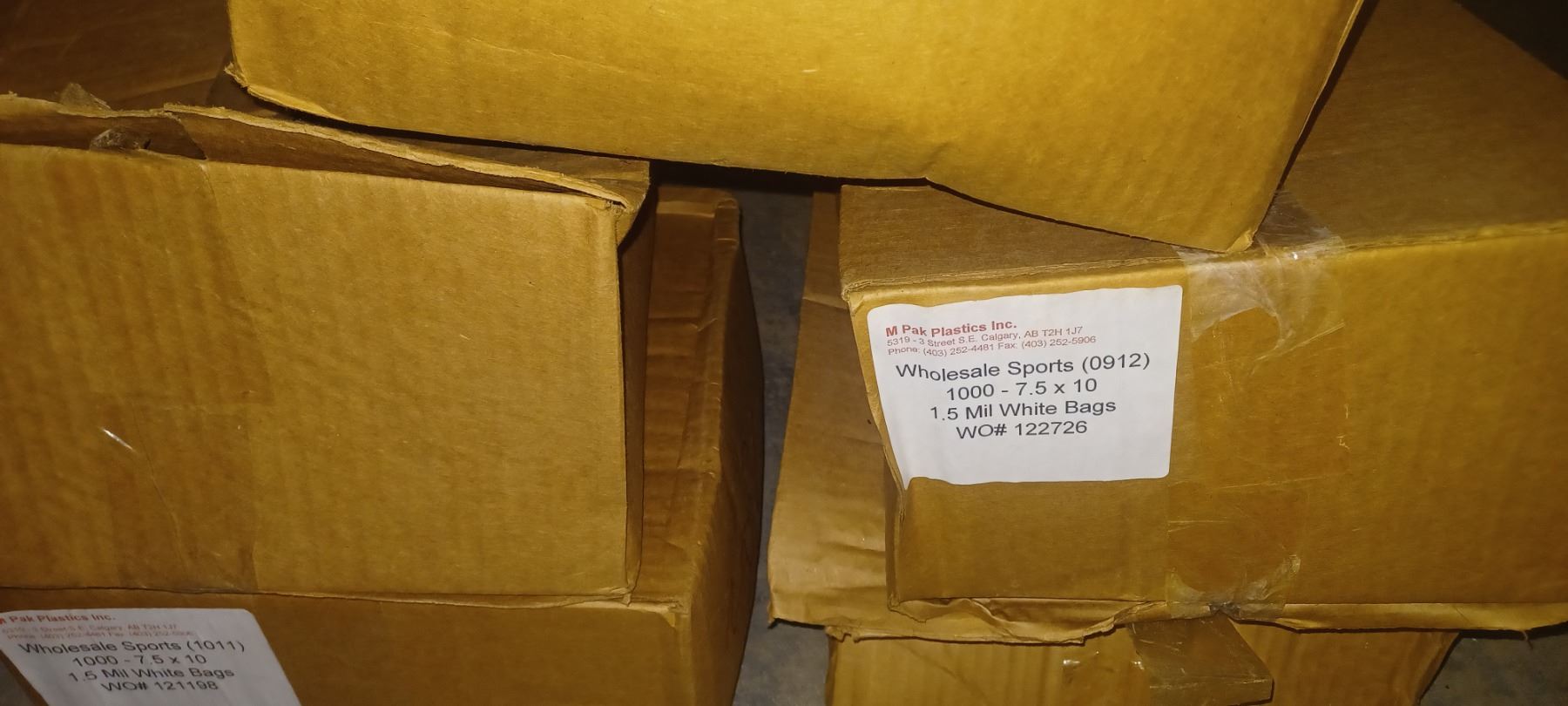 5 CASES OF WHITE 7.5 X10 INCH PLASTIC BAGS 1000/ CASE