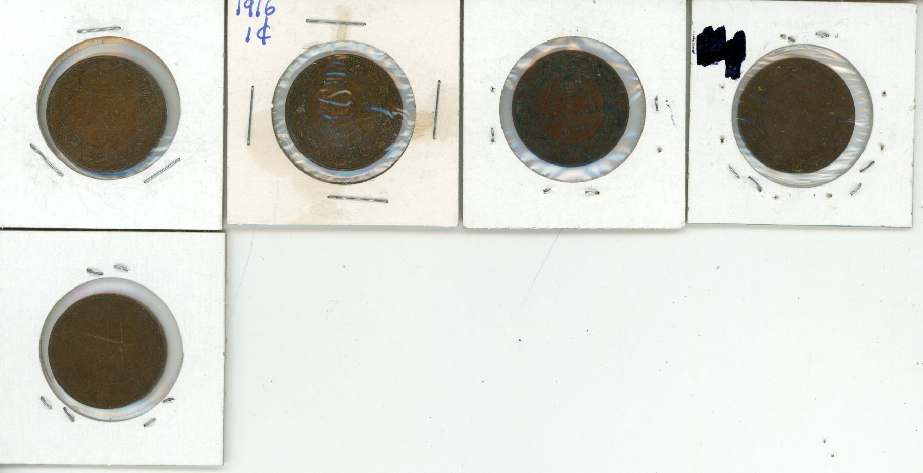 5 – CDN LGE CENTS 1913-XF,1916 -F,1917-F,1918-F,1919-VG
