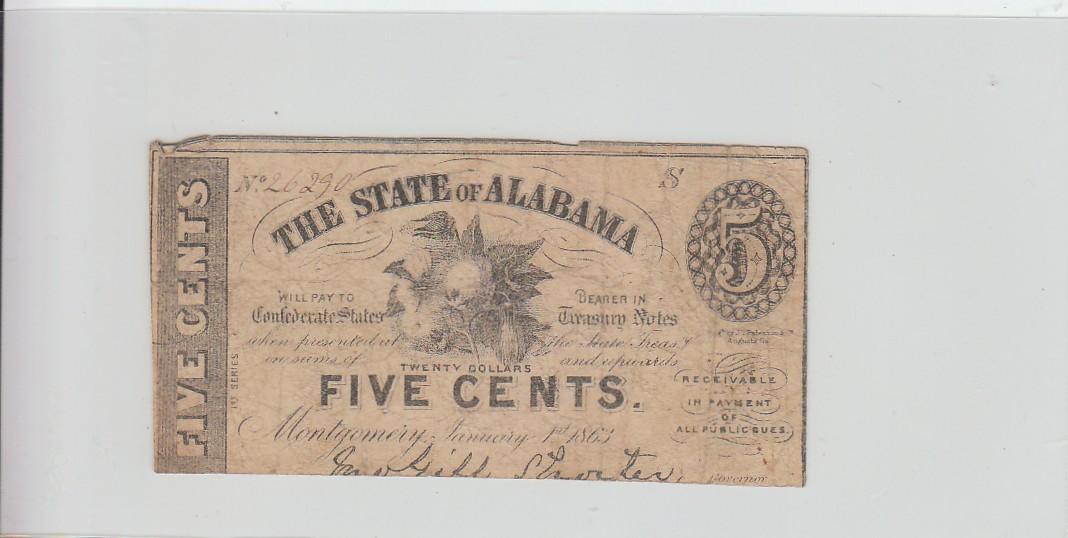 5 CENT FRACTIONAL ALABAMA 1863 CSA CONFEDERATE