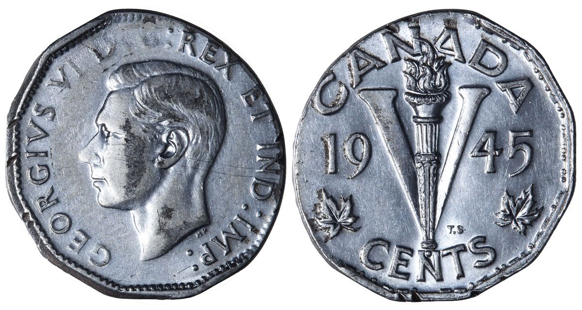 "V" war issue struck on an elliptical planchet (3.9 gms). Extremely Rare. NGC graded Extremely Fine-40.