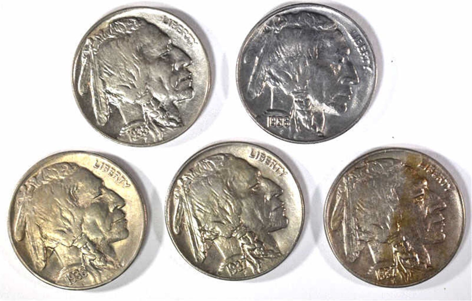 5-CH BU BUFFALO NICKELS: 1-1935, 36, 36-S & 2-37-D