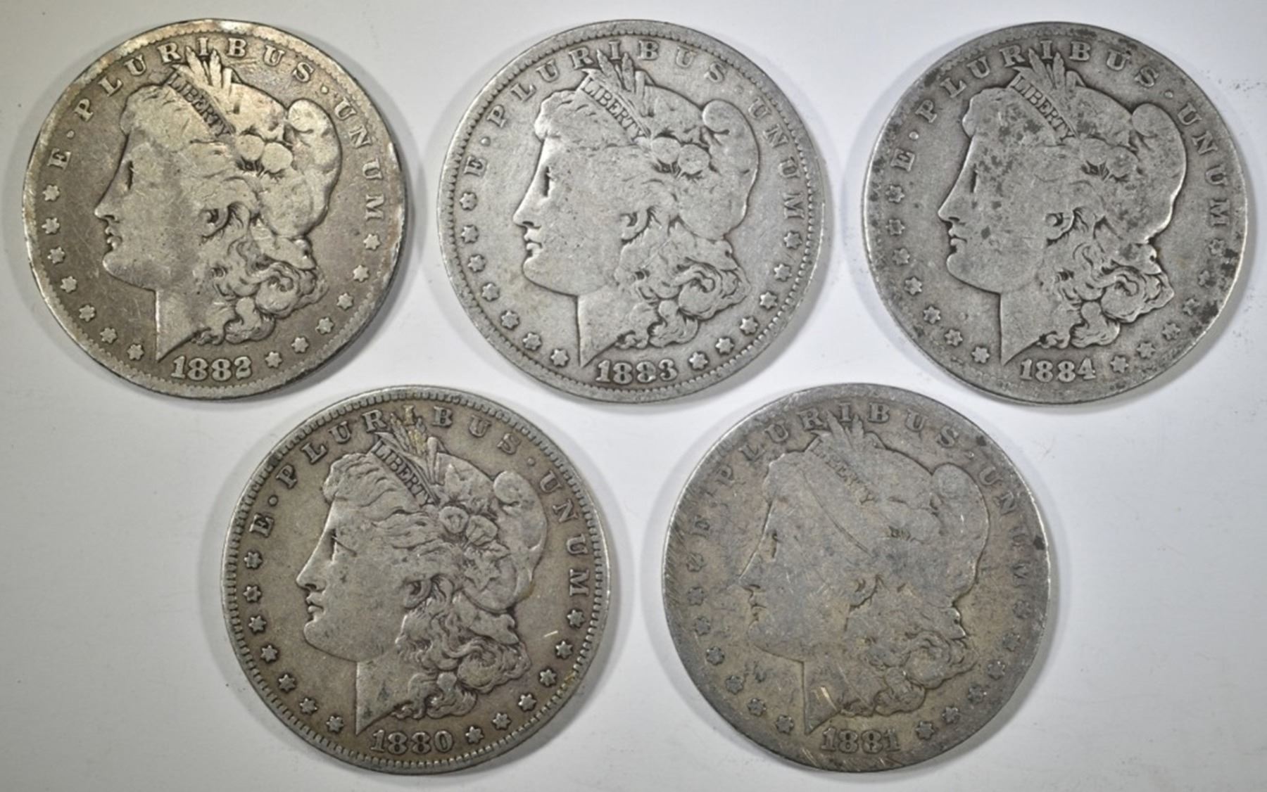 1880-O, 1881-O, 1882, 1883 & 1884. ESTIMATE $125 - $150.