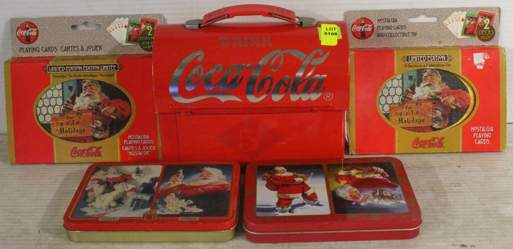5 COCA COLA COLLECTIBLES PLAYING CARDS/TIN CASES