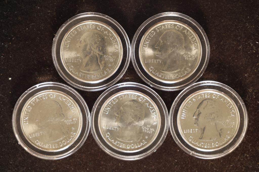 EACH IS IN A HARD PLASTIC CAPSULE: 2012-D HAWAII VOLCANOES, 2012-D EL YUNQUE, 2012-D-ACADIA, 2012-D CHACO CULTURE & 2012-D DENALI