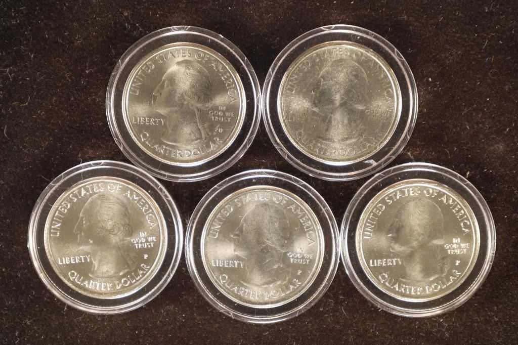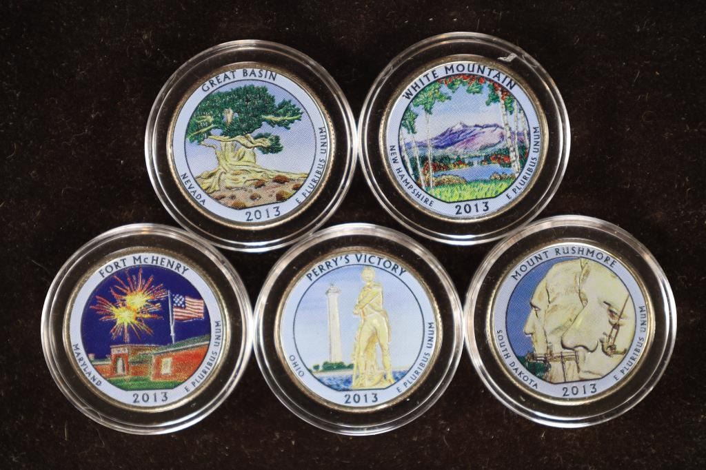 PLASTIC CAPSULES: 2013-D GREAT BASIN NEVADA, 2013-P WHITE MOUNTAIN NEW HAMPSHIRE, 2013-P FORT MCHENRY MARYLAND, 2013-P PERRY'S VICTORY OHIO & 2013-P MOUNT RUSHMORE SOUTH DAKOTA