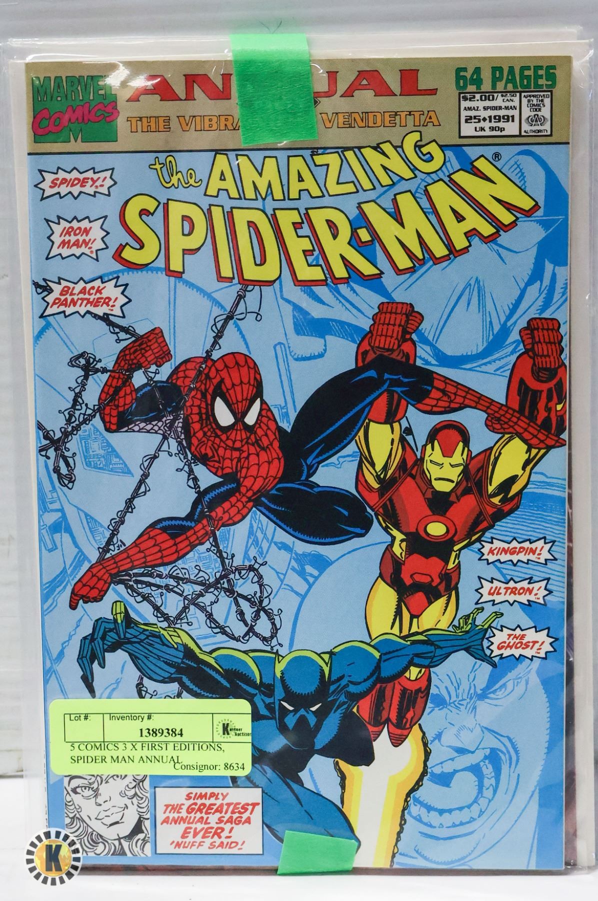 5 COMICS 3 X FIRST EDITIONS, SPIDER MAN ANNUAL
