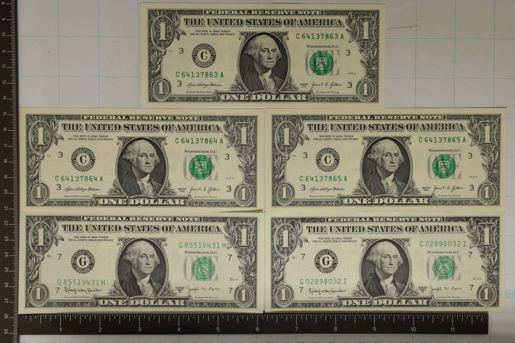CONSECUTIVE SERIAL NUMBERS G85519432H AND G85519431H PLUS 1 SET OF 3-2021'S WITH CONSECUTIVE SERIAL NUMBERS C64137863A-C64137865A.