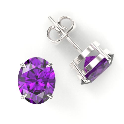 REF-33X3T -21649 ---- 5 CTW Amethyst Designer Inspired Solitaire Stud Earrings 18K White Gold ---- Luxury Designer Brand Earring Appraised at $2,200 Certificate Number US21649 18k White gold, Earring Size is 12 Millimeter, Earring measuring approx. 12 mm x 10mm, weighing in total approx. 3.4 grams. Made in the USA and is stamped 18k, Main stone 5 carat total weight containing 2 pieces of Intense Translucent Purple color with AAA quality Oval shape cut Amethyst , Stone #2 carat total weight containing pieces of color with quality shape cut