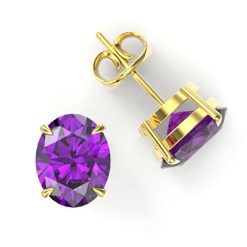 REF-33N3Y -21650 ---- 5 CTW Amethyst Designer Inspired Solitaire Stud Earrings 18K Yellow Gold ---- Luxury Designer Brand Earring Appraised at $2,200 Certificate Number US21650 18k Yellow gold, Earring Size is 12 Millimeter, Earring measuring approx. 12 mm x 10mm, weighing in total approx. 3.4 grams. Made in the USA and is stamped 18k, Main stone 5 carat total weight containing 2 pieces of Intense Translucent Purple color with AAA quality Oval shape cut Amethyst , Stone #2 carat total weight containing pieces of color with quality shape cut
