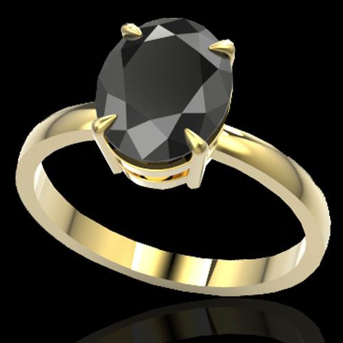 REF-161F8N -22056 ---- 5 CTW Black VS/SI Diamond Designer Inspired Solitaire Ring 18K Yellow Gold ---- Luxury Designer Brand Ring Appraised at $9,800 Certificate Number US22056 18k Yellow gold, Ring Size is 7, Ring measuring approx. 12 mm x 10mm, weighing in total approx. 4 grams. Made in the USA and is stamped 18k, Main stone 5 carat total weight containing 1 pieces of Black Opaque color with VS quality Oval shape cut Diamond , Stone #2 carat total weight containing pieces of color with quality shape cut
