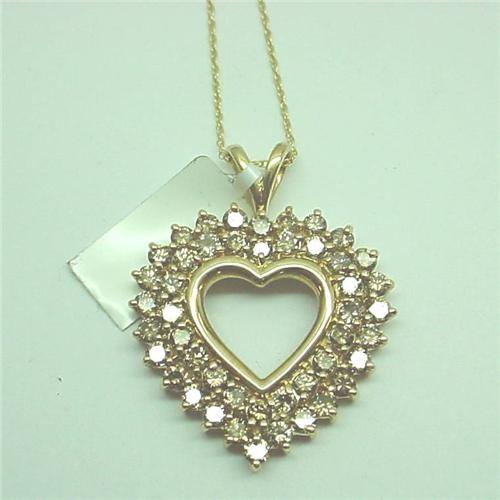 5 CTW CHAMPAGNE DIAMOND HEART PENDANT NECKLACE 10K GOLD