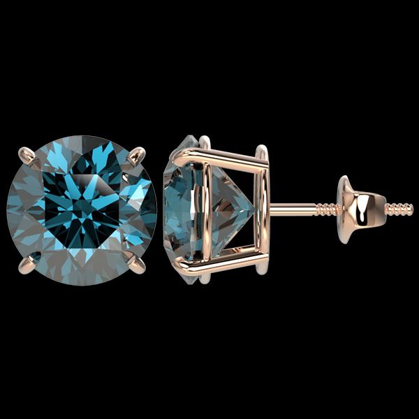 REF-1147M2H -33149 ---- 5 CTW Certified Intense Blue SI Diamond Solitaire Stud Earrings 10K Rose Gold ---- Luxury Designer Brand Earring Appraised at $91,800 Certificate Number US33149 10k Rose gold, Earring Size is Larger, Earring measuring approx. Uniform, weighing in total approx. 3 grams. Made in the USA and is stamped 10k, Main stone 5 carat total weight containing 2 pieces of Intense Fancy Blue color with SI quality Round shape cut Diamond , Stone #2 carat total weight containing pieces of color with quality shape cut