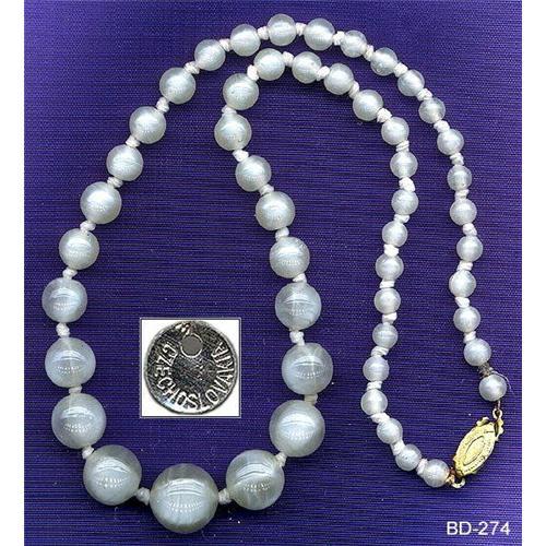 This is beautiful Czech Vintage necklace composed of hand wound semi  translucent LAMPWORK glass beads - Mother of Pearl color. Dimension : 18 inches long, hand knotted and consisting of 51 round beads from 5 - 15mm in diameter. Age : 1930-50's. Stamped Czechoslovakia on paper wrapper, some necklaces have metal tag "Czechoslovakia". Please note that you are buying 5 necklaces. Multiple purchase will save on shipping cost. We have large quantity of Vintage beads - bead designers and dealers please inquire.