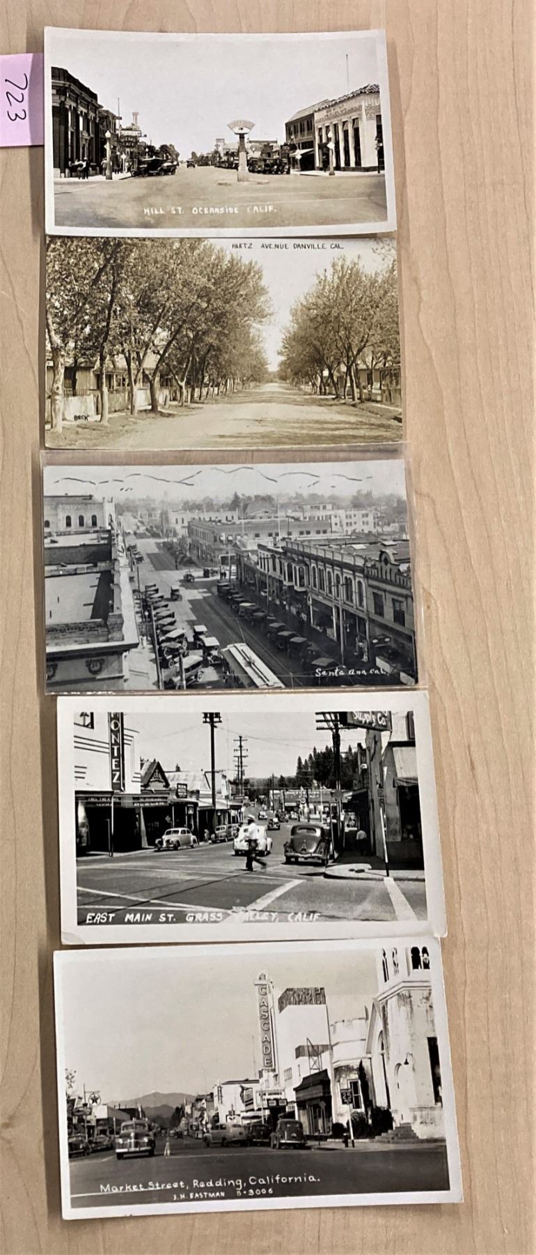 East Main St. Grass Valley, Hill St. Oceanside, Market Street Redding, Santa Ana, Hartz Avenue Danville. Used and unused. Grass Valley has small corner crease.