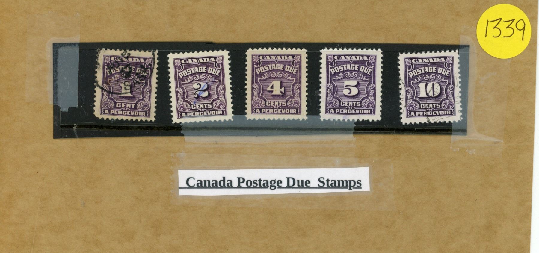 (5) Canada Postage Due Stamps - 1, 2, 4, 5 & 10 Cents